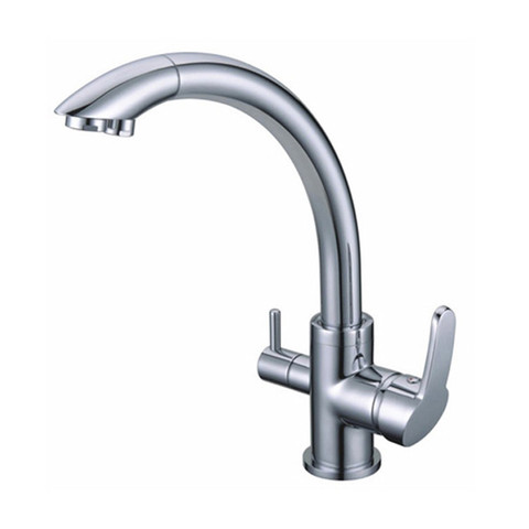 OEMおよびODMクロームデュアルハンドル純水キッチン蛇口デッキマウントヘッドキッチンタップ